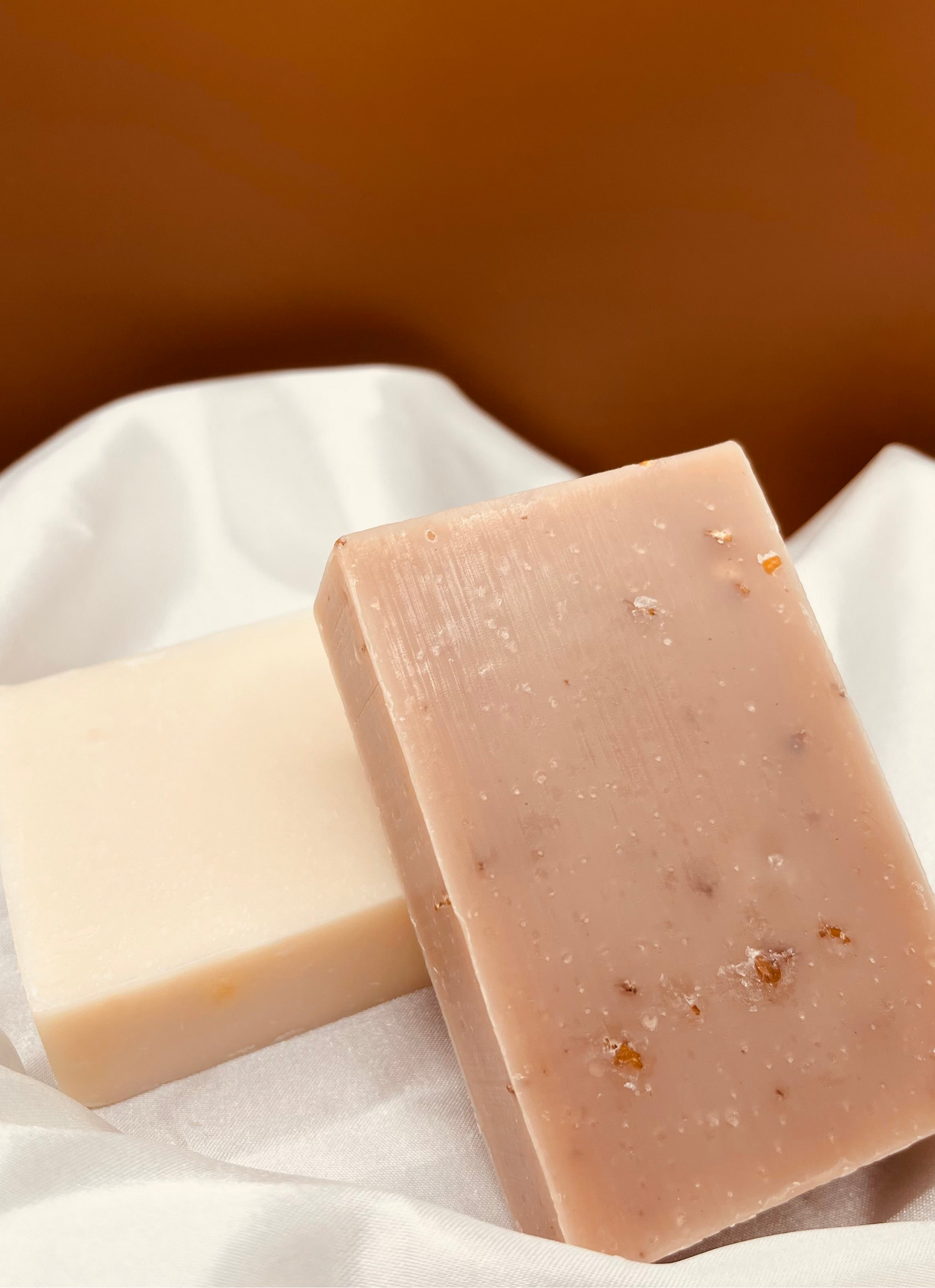 •Treat your skin to the creamy, comforting lather of our Oat Milk & Honey Soap — handcrafted to gently cleanse and deeply nourish. Made with skin-loving oils, organic shea butter, and real oat milk, this bar is perfect for soothing dryness and adding a natural glow. A hint of honey and a soft, sweet scent make each wash feel like a little self-care ritual.