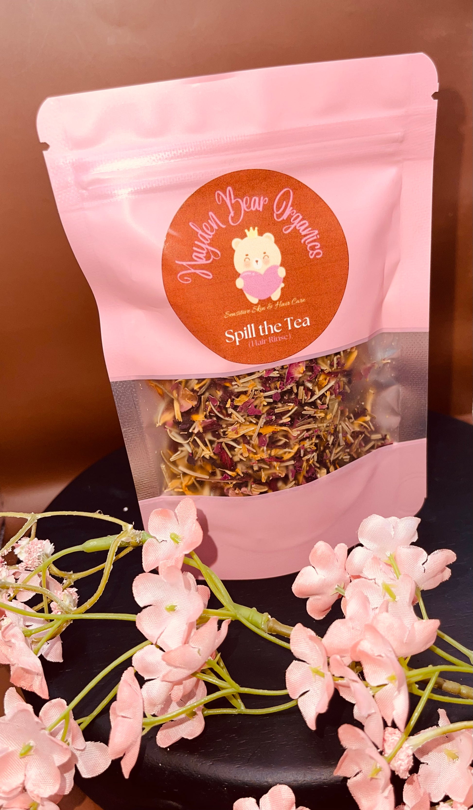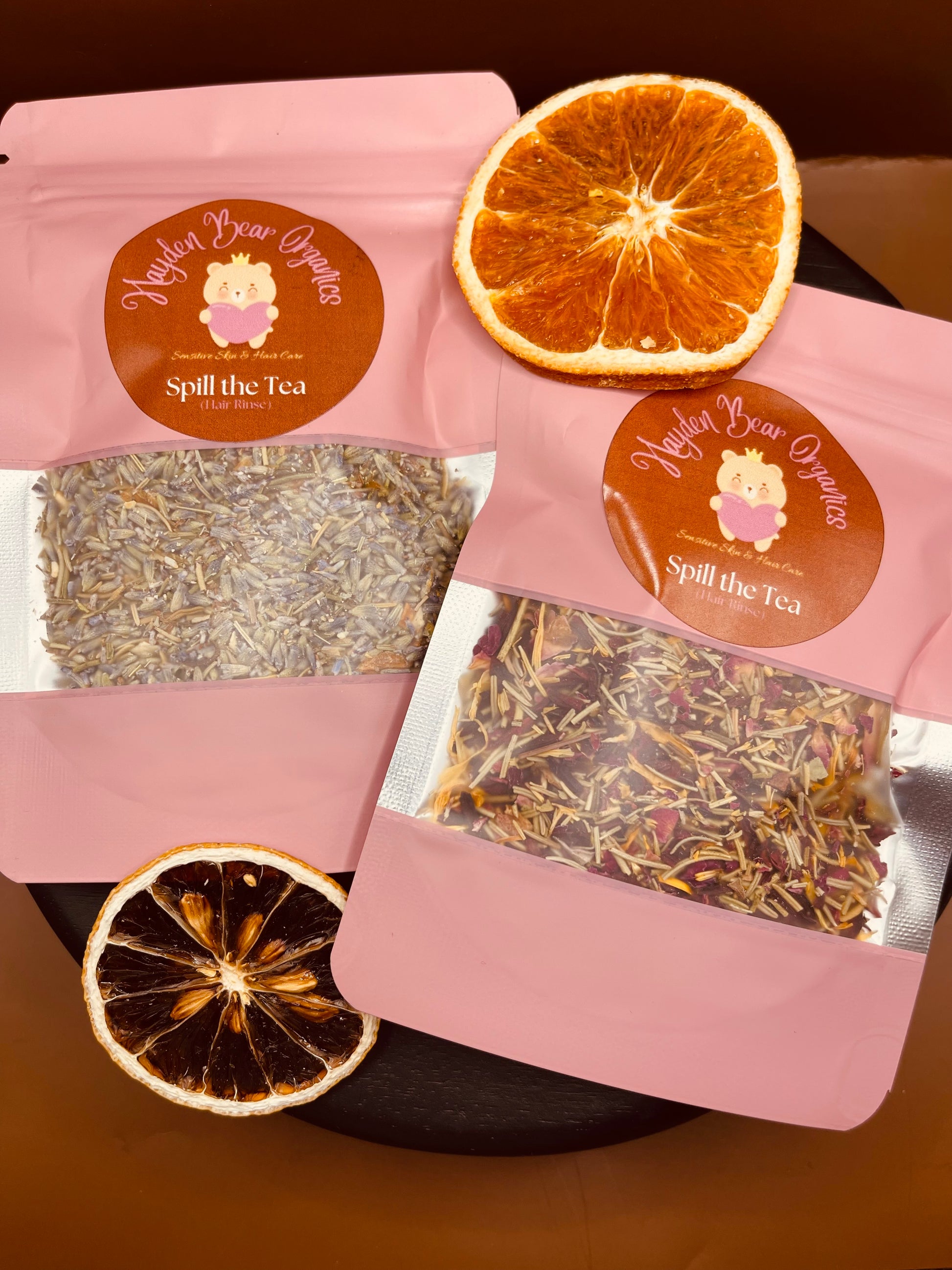 Spill the Tea is our handcrafted herbal tea rinse, made with carefully selected dried botanicals that nourish your scalp, strengthen strands, and promote natural shine. Choose from two beautiful blends—each with its own benefits and mood.